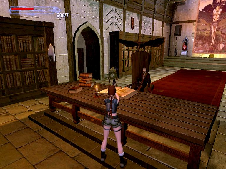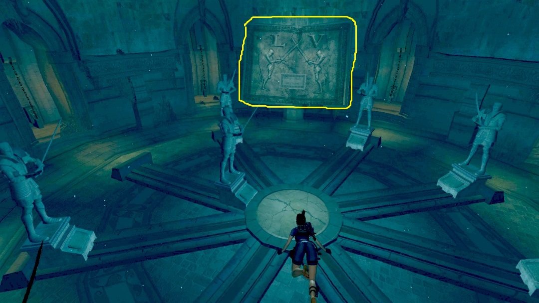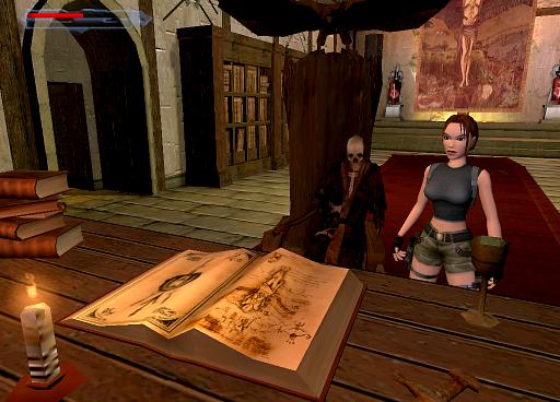 Man beachte die Größe des Buchs im Vergleich zu Lara! Worum geht's? Hier handelt es sich wieder eher um ein klassisches Level, wo du tauchen mußt, und in einen Rittersaal kommst. Download (originale Version): gesammelte Savegames = ZIP-Datei von Level 29 und 30 (neueste Version von damals). Anleitung Text ist enthalten! Und hier ist ein passendes Cheat-Programm. Also da sind jetzt etwas mehr Savegames (SG1 bis SG-E) für dieses Level enthalten, falls du an einer schweren Stelle nicht weiter kommst. Bitte die darin enthaltene Anleitung lesen! Generelle sonstige Fragen/Antworten zu diesem ganzen Savegame-Zeug findest du hier. Remastered Version Savegames kann man z.B. bei Stella herunterladen, oder bei mir im Forum, Und hier ist ein Savegame-Editor für die Remastered Version!