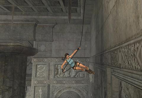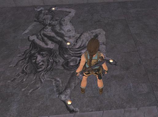 Worum geht's? Hier ist jetzt wieder wie im originalen Tomb Raider 1 etwas mehr los! Lara hat vier Spezialaufgaben in vier "göttlichen" Hallen zu lösen. Immerhin handelt es sich bei den Bezeichnungen der Räume um griechische Götter, und das über einem hängende Damokles-Schwert dürfte ein Begriff sein. Und falls du eigentlich schon immer mal wissen wolltest, was Folly bedeutet... Artefakte / Reliquien: 6 / 0 In der großen Halle Gehe weiter und in die große Halle, beseitige die zwei Tigerenten und springe hinten rechts an der Säule über die Mauerspalten nach oben auf die Spitze. Nun springst du mit Anlauf nach links zur höchsten Säule, wo du unten eine Mauerspalte zu fassen kriegst (sofort festhalten!). Klettere auf ihre Spitze und springe mit Anlauf zu dem Vorsprung an der Wand, wo du drinnen ein vergittertes Artefakt siehst, das wir nachher holen. Springe danach auf den nächsten Vorsprung, wo dir mitgeteilt wird, daß du nun einen "Mauerlauf" starten sollst... Springe also mit Anlauf vor in Richtung des Rings an der Decke und werfe den Haken aus, so daß sich Lara einklinkt und wie Louis Trenker an der Eiger Nordwand hängt. Drehe die Kamera so, daß du zur Wand schaust, und laufe mit links und rechts hin und her, bis du einigermaßen Schwung drauf hast, und springe dann mit der Sprungtaste in die gewünschte Richtung ab = Kontrollpunkt. Auf Louis Trenkers Spuren... (klicken zum vergrößern) Nun kommst du zu einem Wandbild mit einem Bodenschalter davor. Stelle dich auf diesen Schalter, um die leuchtenden Sterne abzuschalten, dieses "Rätsel" also auf Null zu stellen. Am anderen Ende des Gangs siehst du das gleiche Bild, aber mit zwei markierten Stellen. Gehe zurück zum Wandbild, und ziele/schieße auf diese zwei Stellen, wodurch sich am Abgrund das Tor öffnet. Hier läufst du nun bergsteigermäßig an der Wand entlang, um zum Vorsprung zu gelangen, und springst dann weiter zum nächsten, wo du drinnen ein weiteres Bild siehst: Hinweis für das Tor vor der Kugel (klicken zum vergrößern) Kehre zurück zum Wandbild (eventuell auf Null stellen), und schieße auf diese Stellen, wodurch sich die Tür bei der Kugel öffnet = Kontrollpunkt. Nun ziehst du mit deinem Wurfhaken die beiden seitlichen Ringe aus der Kugel, so daß sie herunter kullert und du sie an der Kante in den Abgrund schieben kannst. Springe dort links auf die kleine Säule hinunter, lasse dich zum Boden der Halle hinab und schiebe die Kugel auf den Bodenschalter, wodurch sich oben die Tür dauerhaft öffnet. Jetzt mußt du wieder in der bekannten Weise auf die höchste Säule, und springst mit Anlauf zu dieser geöffneten Tür. In der kleinen Halle kannst du links mit dem Wurfhaken und einem Mauerlauf zu einem Medipack gelangen, dann ziehst du unten den Hebel, merkst dir das Sternenbild an der darüberliegenden Decke, und gehst zurück in die große Halle, wo zwei Tigerenten warten. Begib dich wieder hinauf zu dem bekannten Wandbild, stelle es auf Null, und schieße auf die Stellen des letzten Hinweis-Bildes (siehe unten). Jetzt kannst du in der seitlichen Kammer das Artefakt 1 holen, das du schon gesehen hast. Begib dich wieder hinunter in die große Halle, schiebe die Kugel auf den Bodenschalter in der kleinen Halle, und gehe frohgemut weiter... Hinweis für das Tor vor dem Artefakt (klicken zum vergrößern) Tip: hast du es eilig, z.B. wegen dem Zeitspiel, mußt du nicht zu den Hinweisbildern, sondern kannst am "Schieß-Bild" die benötigten Tore in einem Aufwasch öffnen. Beim Zeitspiel mußt du das Artefakt sowieso liegen lassen. Auf der Jagd nach den 4 Schlüsseln kommst du in die zentrale Halle des Levels, in der du 4 versperrte Türen findest. Die Reihenfolge ist egal, aber es bietet sich an, daß du zunächst die Poseidon-Tür öffnest: springe hinüber auf den zentralen Turm und gehe zum rechten Ende des Weges. Hier siehst du einen goldenen Ring an der Wand. Werfe den Haken daran und ziehe, um einen Vorsprung heraus zu ziehen, auf den du mit Anlauf springst (festhalten). Springe nach links weiter auf den nächsten Vorsprung, nach rechts in die Nische, an die Stange und zum Hebel, der die Poseidon-Tür öffnet = KP. Springe über die neue Plattform zurück zum zentralen Turm, gehe zur anderen Seite des Turms, wo du einen weiteren Hebel siehst, und werfe deinen Haken an den Ring, der darunter liegt, um die Säule heraus zu ziehen. Jetzt läßt du dich in der Mitte des Turms auf die Platte hinab und weiter hinunter, um zu der Säule zu kommen, die du gerade herunter gekippt hast. An ihrem anderen Ende liegt links ein kleines Medipack, und du kletterst rechts hinauf, und springst weiter nach oben, um die Hephaestus-Tür zu öffnen. Bilanz: zwei der vier Türen sind nun offen, begib dich der Einfachheit halber zum nächstliegenden Hephaestus-Eingang. Springe wieder zum zentralen Turm, lasse dich in der Mitte hinunter, wo du rechts die offene Hephaestus-Tür siehst, und links einen Schalter an der Wand, auf den du schießt, worauf sich darunter eine Plattform ausfährt. Springe auf diese Plattform und schräg nach rechts zur Kletterkante, nach rechts zur nächsten Kante weiter und ziehe dich in die Nische hoch. Springe von dort an die Stange und schwinge an die Kante, lasse dich zur darunter liegenden Kante herab (festhalten!) und ziehe dich hoch. Watschle weiter und hangle zum Eingang = KP. Hephaestus-Raum Drinnen ziehst du den Hebel, und kletterst über die Kanten hinauf in den Durchgang über der verschlossenen Tür. Lasse dich auf der anderen Seite hinab und gehe zur Blitzhalle. Hier sind in den Ecken vier erhöhte Platten = Bodenschalter. Du mußt jede dieser Platten betreten, wenn sie sich gerade senkt, denn gesenkte Platten sind sicher, und dann schnell wieder in Sicherheit laufen. Wenn du alle vier Bodenschalter betreten hast, öffnet sich drüben das Gitter. Im nächsten Raum mußt du drei Statuen auf drei runde Bodenschalter schieben (die Säulen kann man nur von hinten anpacken, wo der Griff ist