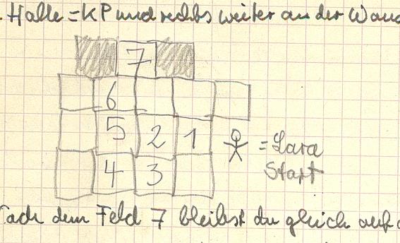 Seite), wo Lara den schweren Sprung geschafft hat, und am Ausgang der