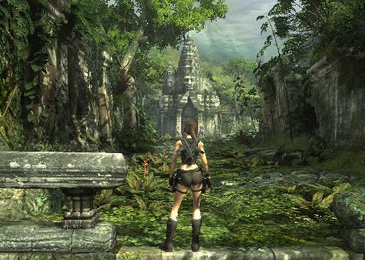 Vorbemerkungen Die Steuerung ist praktisch genauso wie die TR Anniversary-Steuerung Man kann nicht abspeichern, wenn Lara stirbt, beginnt die Demo am letzten Kontrollpunkt = KP. Beendet man die Demo, muß man wieder von vorn anfangen. Die Kontrollpunkte werden durch ein Glöckchen (akustisches Signal) angezeigt. Die kleinen Vasen kann Lara zertreten, darin sind manchmal Wertsachen. Die Secrets werden durch einen besondern Klang (akustisches Signal) beim Aufnehmen gekennzeichnet. Tip: wenn deine Gesundheit am Ende ist, erkennbar durch die "Füllung" der grünen Lara links oben bei gezogener Waffe, dann kannst du dich einen Abgrund hinunter stürzen, dadurch fängst du wieder am letzten Kontrollpunkt an, und dabei hat Lara automatisch immer volle Gesundheit. Neu: Lara kann jetzt auch beim hangeln, klettern, schwimmen und tauchen schießen. Auf manche schmale Mauerkanten kann sie sich hochziehen (zusätzlich springen drücken) und darauf stehen. Neu ist auch der Mauersprung (siehe unten bei "der Aufstieg"). Lösung: Der Aufstieg Springe ins Wasser und erlege (Lara kann jetzt auch im Wasser schießen) die beiden Ölsardinnen, oder lasse sie in Ruhe, dann tun sie nichts. Schwimme links an dem Felsen, wo Lara an Land gehen kann, vorbei, und in die "Höhle", hier liegt am Grund Secret 1. Die Secrets erkennt man daran, daß ein besonderes Signal ertönt, wenn man sie nimmt. Schwimme nun zu dem kleinen Felsvorsprung und gehe an Land = KP. Klettere an dem Fels mit den Knubbeln hinauf und nach rechts, bis es nicht mehr weiter hinauf geht. Springe hoch zum nächsten Kletterstück, springe nach rechts an die Kletterpunkte, klettere so weit wie möglich hoch und springe an die Kante hoch. Springe zur nächsten Kante hoch, hangle und springe nach rechts weiter an den Kanten und bis zum Ende, hier sind Spinnen und Wertsachen sowie Secret 2. Die Spinnen kann Lara noch während des Hangelns mit der Pistole beseitigen. Springe ins Wasser hinunter, klettere wieder hinauf, aber diesmal nach links hinauf und um die Ecke, bis du an dem steinernen Geländer bist. Springe am Ende rückwärts an die Felskante ab, hangle nach rechts bis zum Ende und ziehe dich auf die Kante hoch (zusätzlich springen drücken). Springe nun hinüber zu dem Weg und gehe die Treppe hinauf = KP, rechts weiter hinauf (Wertsachen) und springe am Ende an die Stange. Schwinge vor an die Mauerkante und springe/ziehe dich rechts hinauf. Gehe rechts um die Ecke weiter und hänge dich gleich rechts an die Kante (siehe Screenshot), lasse dich hinunter an die Kletterpunkte und klettere nach links in die Ecke, springe dann nach links an die Kante ab und ziehe dich hoch zu Secret 3. Begib dich auf dem selben Weg wieder hinauf und nach rechts weiter. Springe am Ende nach links an die Mauerkante, hinauf zur nächsten Kante und ziehe dich auf sie hinauf. Springe an die andere Kante und springe/ziehe dich hinauf. = KP. Gehe weiter bis zur Grube und werfe deinen Magnethaken (Q) an den Ring. Springe vor und ziehe dich am Seil etwas hinauf, dann kannst du hinüber schwingen. Gehe weiter und geduckt durch die Öffnung, dann die Treppe hinauf. Zertrete rechts die Vasen (E) und nimm Secret 4. Jetzt kommt eine neue Technik: der Mauersprung. Stelle dich links zwischen die Säule und die Wand. Springe links an die Säule hoch, wo sich Lara kurz festhält, jetzt mußt du sofort rückwärts an die Wand abspringen und wieder sofort vor an die Kante an der Säule. Du mußt also quasi zwischen den Mauern hin und her springen und dich dabei hocharbeiten, bis du dich festhalten kannst, diese Technik kommt noch öfter vor. Klettere nun links um die Ecke und springe an die nächste Säule, springe dort hoch zur Kante und rückwärts ab an die nächste Kante. Hangle dort nach rechts bis zum Ende und springe rückwärts an die Säule ab. Hangle nach rechts um die Ecke und springe hoch an die Kante, dann nach links weiter an die Kante und hangle bis zum Ende. Springe hoch, hangle nach rechts und ziehe dich hoch = KP. Vor dem Tempel Gehe weiter und hinunter zu den Säulen, springe an die Kante der linken Säule, eine Kante höher, hangle rechts um die Ecke und springe an die andere Säule ab. Hangle links um die Ecke und lasse los, so daß Lara sich an der Stange festhält. Hangle zur Mitte und schwinge an die andere Stange ab, schwinge weiter an die Felskante, hangle nach rechts und springe rückwärts an die Säule ab. Hangle dort links um die Ecke und lasse dich an die darunter liegende Kante hinab. Springe nach links an die Stange ab, hangle daran zur anderen Seite und lasse dich über die Kanten zum Boden hinab. Gehe weiter, bis zwei Kampfdackel kommen, Trick: und laufe/springe schnell wieder zurück auf den Block an der Säule, von wo aus du sie herzlich und gefahrlos begrüßen kannst, danach sammelst du die Wertsachen sowie Secret 5, und begegnest eventuell noch einem weiteren Goldhamster. Springe danach zu dem waagrechten Steinbalken hoch = KP, balanciere auf ihm zur Säule und springe an die Kante hoch, hangle links um die Ecke und springe rückwärts auf den Steinbalken ab. Balanciere zur Säule und springe an die Kante hoch, wo du rechts um die Ecke hangelst. Nun kommt wieder der allseits beliebte Mauersprung: springe so lange zwischen den Säulen hin und her, bis du oben die Kante erwischst. Nun kommt der Weg zu einem Secret, wenn du es nicht haben willst, machst du im nächsten Absatz weiter... Umweg zu Secret 6: hangle nur um die erste Ecke, und springe nach links an die Mauerkante der nächsten Säule ab. Das ist etwas schwierig, du mußt an der Ecke springen drücken und sofort links, sonst hangelt Lara einfach wieder zurück. Springe dann nach links an die nächste Säule, hangle um die Ecke und lasse dich auf den Balken hinunter. Hänge dich an seine Kante, hangle nach links zur Säule und springe hinüber zur Tempelmauer, wo du dich hochziehst = KP. Hole Secret 6 und springe an die linke Säule, hangle herum und springe an den Steinpfahl ab. Von diesem